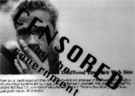 Una de las primeras manifestaciones de censura en el ciberespacio se ha dado con el ``material indecente'' del actor Brad Pitt. Las fotografías en donde aparecia desnudo y ``que no sabe quién metió a Internet'' ya no se pueden ver y en cambio aparece el aviso ``censurado por el gobierno''. Se advierte que las autoridades estadunidenses tienen prohibido el ingreso a la red de material ``indecente'' que puede ser accesado por menores, so pena de 2 años de cárcel y 250 mil dólares de multa.