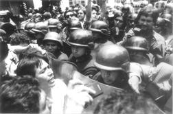 granaderos que ostaculizaron el paso de la marcha
