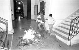 ayuntamiento; ayer quemaron llantas en la alcaldía.
