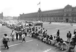 al edificio del DDF para simular una fila que espera realizar