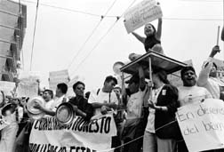 Mitin en el Zócalo del FAC-MLN, contra el hostigamiento.