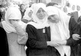 Mujeres palestinas en el funeral de un joven muerto durante los