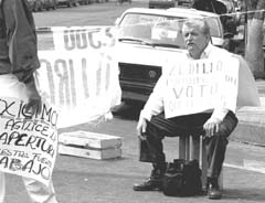 Frente al Senado, un ex trabajador de Limpia de Tabasco pide una