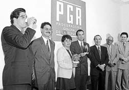 PGR, durante un brindis con reporteros.