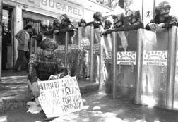 Protesta de profesores tabasqueños frente a La Jornada.