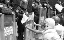 Los manifestantes anunciaron que en la primera semana de marzo, cuando se realice la convención bancaria en Cancún, Quintana Roo, los militantes de la Asamblea Ciudadana de Deudores de la Banca intentarán entregar un nuevo escrito al presidente Ernesto Zedillo. (Roberto González Amador)