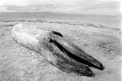 Cadáver de ballenato en una zona de dunas frente a la laguna