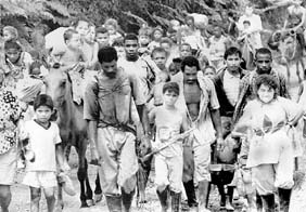 Antioquia que huyen del fuego cruzado de soldados, rebeldes y