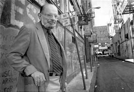 El poeta aparece aquí en el callejón Jack Kerouac, en San Francisco,