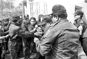 compañeros, acusados de extorsión; en la imagen, los jaloneos
