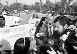 Minutos antes de las nueve de la mañana, mujeres y hombres hemofílicos y enfermos de sida, algunos acompañados por sus hijos, también afectados por esos padecimientos, sorprendieron a Juan Ramón de la Fuente y a Genaro Borrego Estrada.