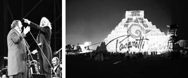 Pavarotti con el director del concierto, Janos Acs; a la derecha, el