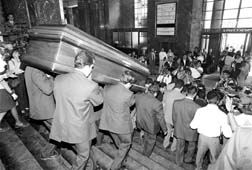 El féretro con los restos de Gabriel Figueroa es trasladado después