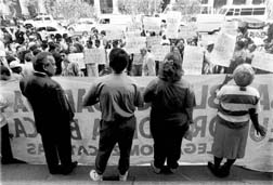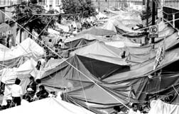 Plantón de maestros sobre la calle Venezuela, en el Centro