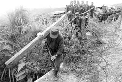 Sobre el mismo cerro, al mismo tiempo, unas dos docenas de simpatizantes del Ejército Zapatista de Liberación Nacional (EZLN) empezaron los trabajos de desmonte para alambrar las orillas del campamento castrense, evitar mayor movilidad de los soldados y mantener una ``vigilancia permanente'' de los grupos de élite que fueron transportados el pasado domingo en helicópteros militares y del gobierno del estado.