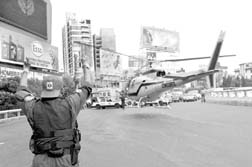 Sobre Insurgentes, helicóptero de la SSP transporta a un