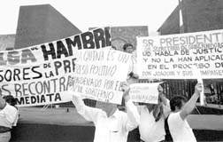 Manifestación en favor de Joaquín Hernández Galicia frente al