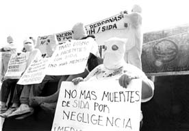 Plantón de enfermos de sida frente a San Lázaro, durante la