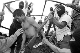 indígenas desplazados, este hombre, armado con un rifle, fue