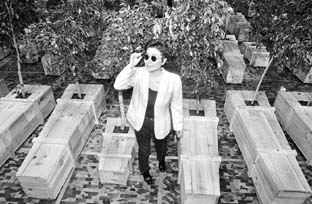 instalación de su autoría conformada por 100 féretros y