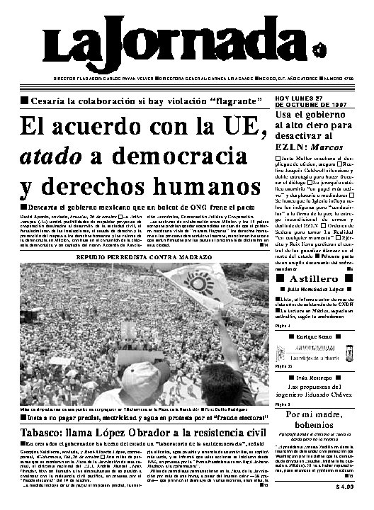 Se informa a los lectores de la Jornada en internet que el sitio