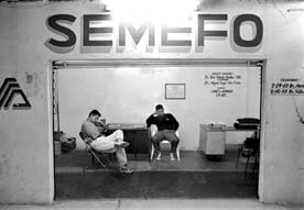Guardia de policías judiciales de Guerrero durante la autopsia en