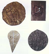 -En realidad todo, la idea circular de la moneda y su contenido, las imágenes de los grandes personajes que aparecen en ellas. En esta exposición juego con la idea de que las monedas pueden ser ilusorias. Así, a las esculturas de yeso les di este acabado de ``metal''; son los tonos que manejo en esta exposición: el cobre, la plata, el oro, todo es ilusorio, todo es puro sueño. También hice una maqueta con la idea de un Templo-Casa de Bolsa, para los que adoran el dinero y el poder.