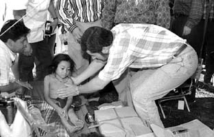 los desplazados: una niña indígena con neumonía es atendida por el