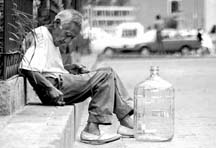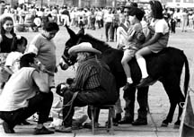 Don Pedro Jaso y su burro El Chaparro, en el Zócalo