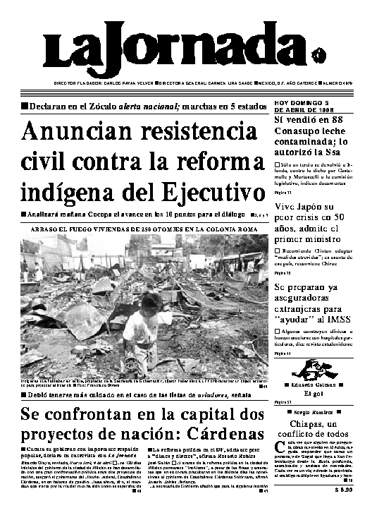 Primera Plana Contraportada Editorial Opinión Masiosare La Jornada Semanal Suplementos Fotos Cartones de los moneros de La Jornada Búsquedas en La Jornada
