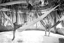 Guardia del centro ceremonial maya de Tixcacal,