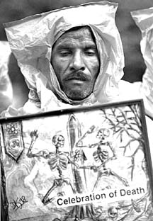 ``Celebración de muerte'', dice el cartel. Pakistán realizó ayer