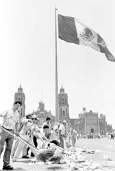 Limpieza en el Zócalo, luego de una manifestación de ambulantes.
