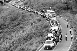 Caravana de indígenas desplazados, originarios de la comunidad Los