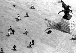 Paseo de la Reforma entre un grupo de granaderos. Una vendedora de