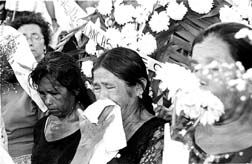 Viudas y madres de las víctimas de la matanza, durante el acto