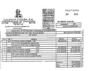 Una de las facturas que el establecimiento de Lomas de Chapultepec