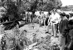 Remoción de escombros y lodo entre las casas destruidas por la tromba