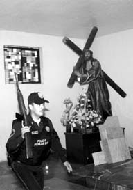 Búsqueda de asaltantes en el interior de la iglesia del Sagrado