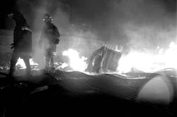 Elementos de Cuerpo de Bomberos caminan entre el fuego que hoy por