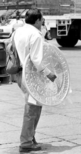 Hombre y macromoneda. Foto: Guillermo Sologuren