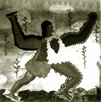 Otra cosa que quedó clara acerca de Condoy: que casi nunca se le ha pintado. Sólo existe una antigua vasija de barro en la que, con un relieve, se representa el nacimiento de este mítico héroe y a partir de la cual se elaboró en los setenta un mural en Tlahuitoltepec Mixe, dentro de la escuela de Siqueiros.