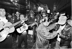 Integrantes de El Barzón metropolitano, frente a las instalaciones de