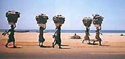 El amo y señor de este mundo de caminos, rutas y trayectos africanos, es el conductor de los camiones de carga. Los automóviles particulares resultan demasiado frágiles para moverse a través de estos baches y recovecos. La mitad de ellos pronto acabaría por atascarse en el trayecto (sobre todo en temporada de lluvias), en tanto que muchos otros, tarde o temprano, no servirían más que para el deshuesadero. El camión de carga, en cambio, llegará prácticamente a cualquier parte. Cuenta con un potente motor y anchas llantas, posee una suspensión tan fuerte como la del puente de Brooklyn. Sus conductores están plenamente concientes del invaluable tesoro del que disponen, y de que en él radica su fuerza. De entre la multitud caminera, cualquiera podrá reconocerlos al instante por la forma en que se mueven. Cada uno se comporta como rey. A menudo, en el momento de detener el vehículo y sin necesidad de descender las alturas de su asiento, no faltará quien les suba a la cabina todo lo que pidan. Si el camión llega a parar en alguna localidad, al momento se le arrimará un tumulto de gente cansada y suplicante: son aquellos que quieren llegar a alguna parte y no tienen cómo. Acampan por tanto al borde del camino, esperando una oportunidad, alguien que por una paga los lleve consigo. Nadie esperaÊcompasión. Los conductores de camiones de carga no conocen este sentimiento. Largas filas de mujeres cargadas de bultos transitan por los caminos, desfilan incesantemente en medio de las ascuas y el fuego del trópico. Si el conductor llevara en el corazón al menos una pizca de compasión y quisiera ayudarlas, tendría que detenerse a cada momento; nunca llegaría al lugar de su destino. Es por eso que las relaciones entre los conductores y las mujeres que caminan por la orilla están marcadas por una frialdad total: cada una de las partes parece no advertir la presencia de la otra, se cruzan en el camino con la más absoluta indiferencia.