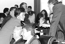 Moreno, saluda a legisladores durante la sesión de ayer en