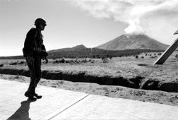 Un soldado del Ejército Mexicano observa una fumarola