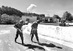 En Xalizintla, Puebla, soldados caminan por las calles de este