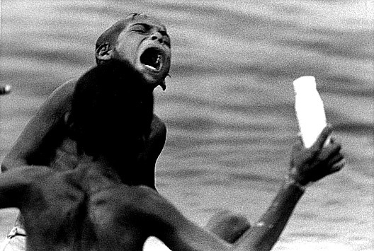 Pero en ese momento, estaba allí, muriéndose al igual que los demás niños. Y entonces viene la rabia, el coraje, pues cada uno de nosotros -pienso- los mismos, esos mugrosos que estiran la mano, los de los pelos parados y pantalones rotos, los que se trepan a los cofres a cambio de una mentada de madre y un peso que cae en el suelo, son los hijos de los indios, son los que se alimentan de pescuezos y retazos de pollo, son los de los ojos tuertos y el corazón reventado.