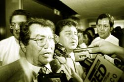 Luego, para probar su distancia respecto de la manera de hacer política que ha dado lugar al escándalo, saca su discurso de toma de posesión de julio de 1996: ``...Si se sorprende a cualquier dirigente del partido condicionando la gestión social o pasando lista en eventos del partido, debe ser sancionado de manera severa, cancelando su afiliación...''