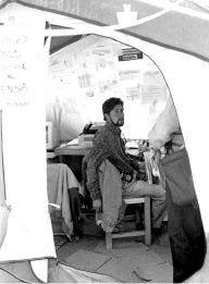 Miguel de Jesús González, líder del sindicato, en la puerta 6 de la Ibero, ayer en la mañana n Foto: Pedro Valtierra